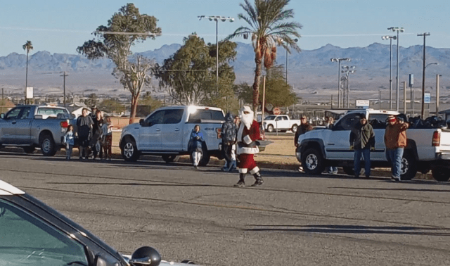 ZachNews has learned after the surprised giveaway that Santa Claus’ wonderful helpers included members of the Fraternal Order of Eagles 2599, members of the Tim Heiden Life for Christ Foundation, American Cruisers and deputies from the San Bernardino County Sheriff’s Department’s Colorado River Station; all coming together to to brighten up kids and their families.