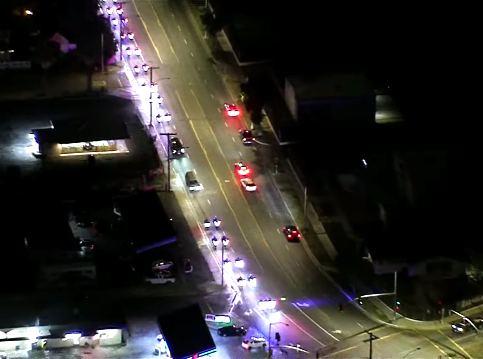 The suspect inside a pickup truck LED multiple authorities on a police pursuit over several freeways in Riverside County, California; dozens of law enforcement vehicles following the pickup truck close behind as the suspect speeding at around 45-50 mph along California State Route 60 then onto Interstate 15.