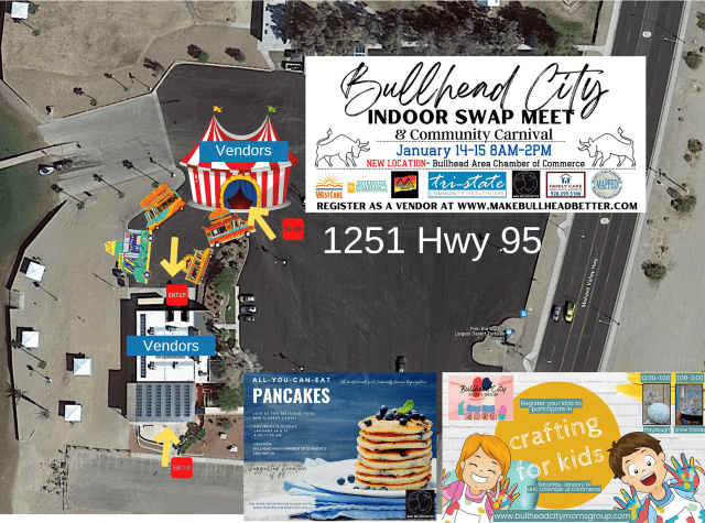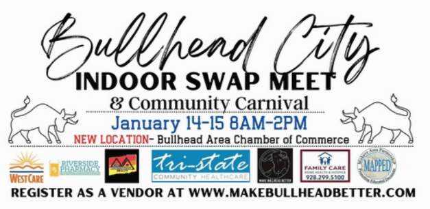 Bullhead City, Arizona: The Bullhead City Swap Meet and Community Carnival is being held at the Bullhead Area Chamber of Commerce starting at 8:00 a.m. MST on Sunday, January 15th, 2023.